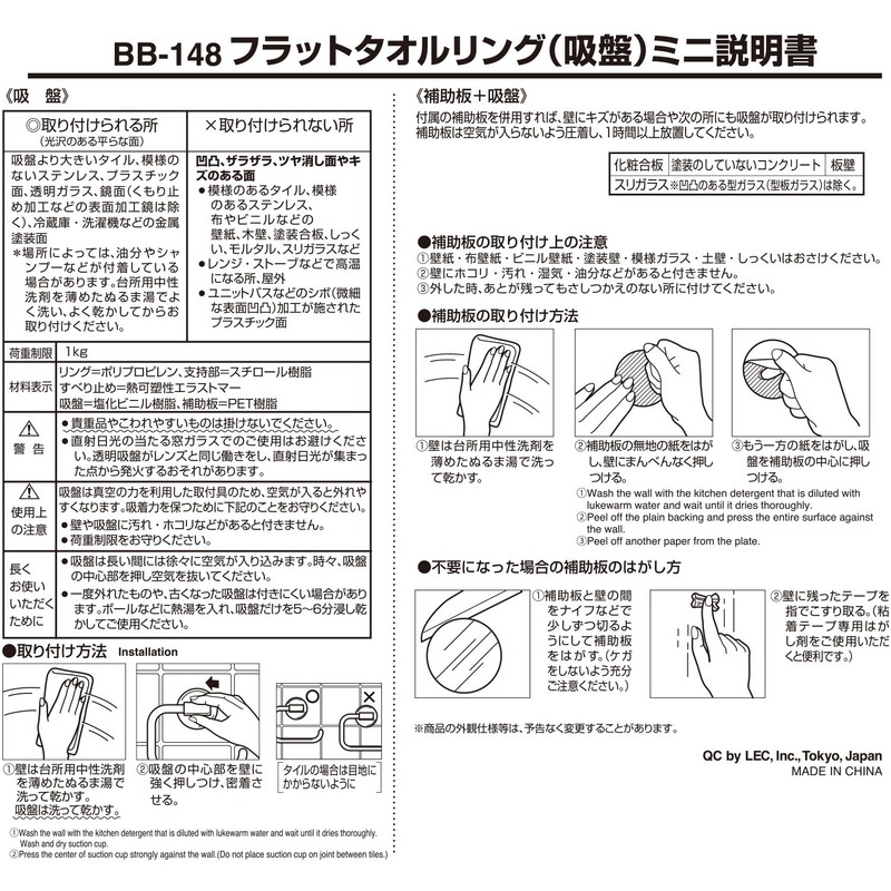 LEC Flat Mini Towel Ring (Towel Hanger) Suction Cup