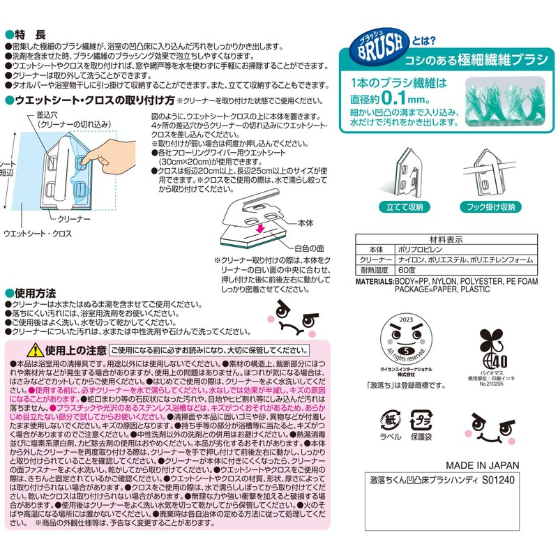 LEC Gekochi-kun Bathroom Uneven Floor Brush (Handy) Ultra Fine Brush That Reaches Into Grooves