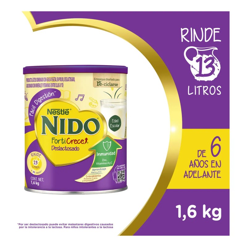Leche En Polvo Nido Forticrece Deslactosado En Lata De 1.6kg