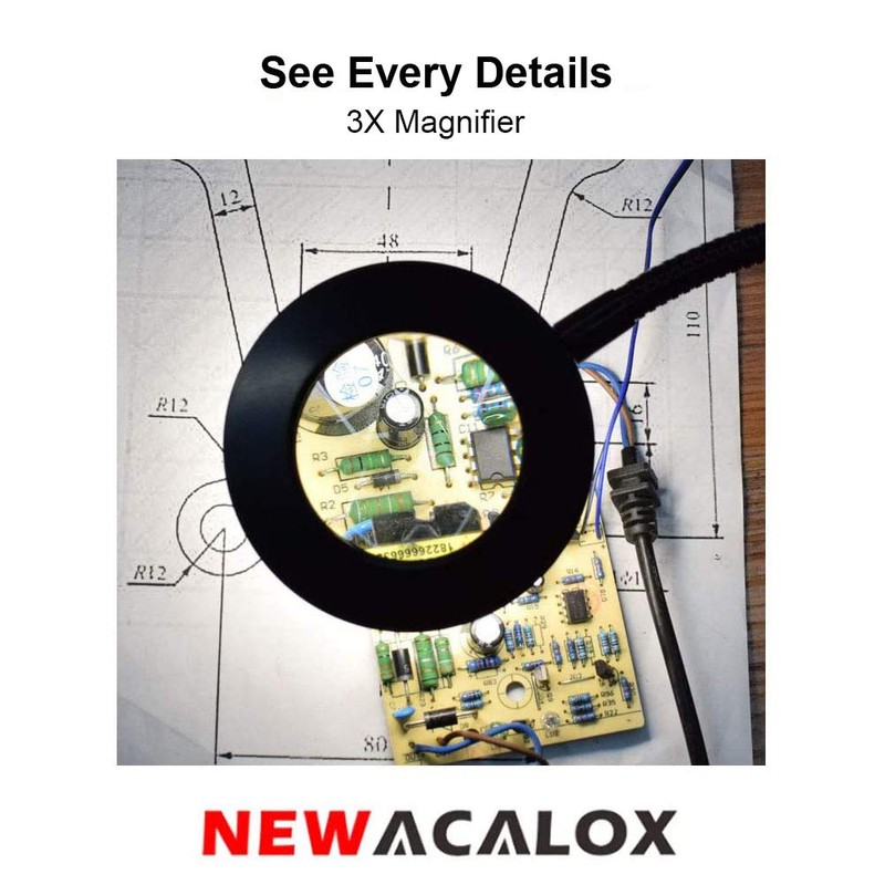 NEWACALOX LED 3X Magnifier, Flexible Gooseneck Magnifier Lamp Strong Magnet Base, Can Be Positioned to Hold The Magnifier Where You Want Hands Free