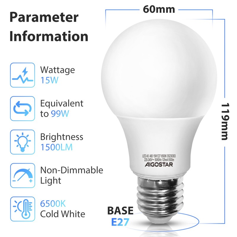 | Color: | Cool White Light 15w E27 |