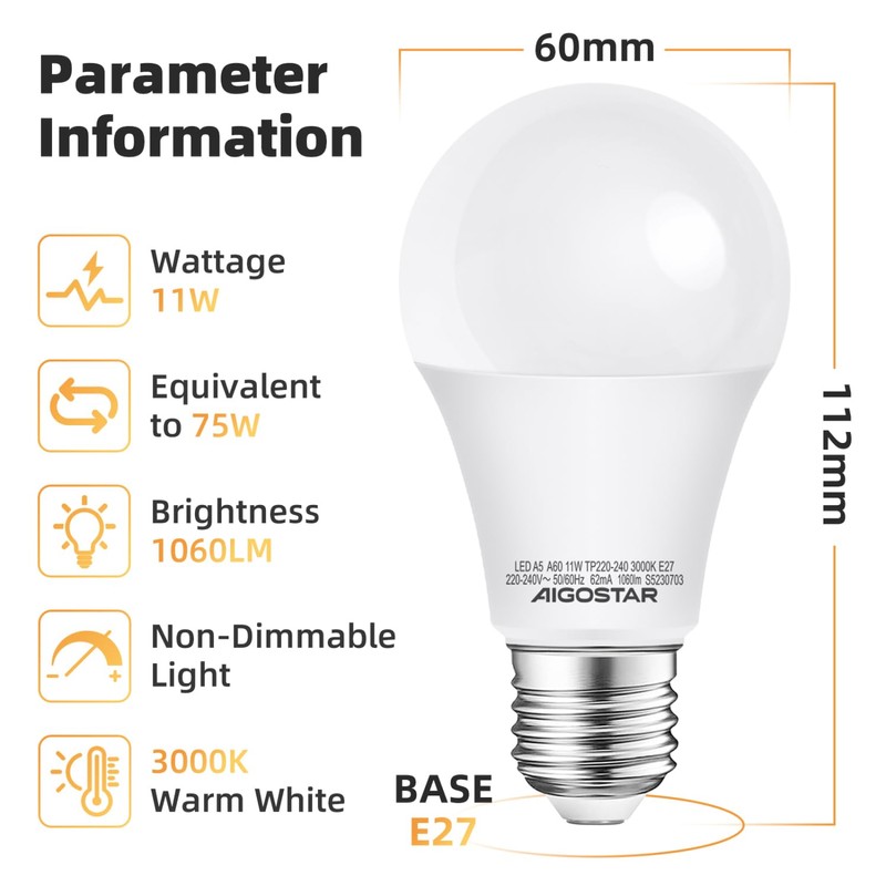 - LED lamp, model A65 15 watt, non-regulable, quality salt, E27 socket.