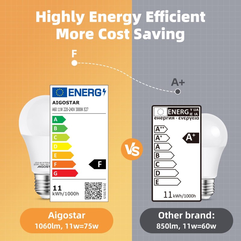 - 15 W = 120 W incandescent bulb energy saving up to 80 %.