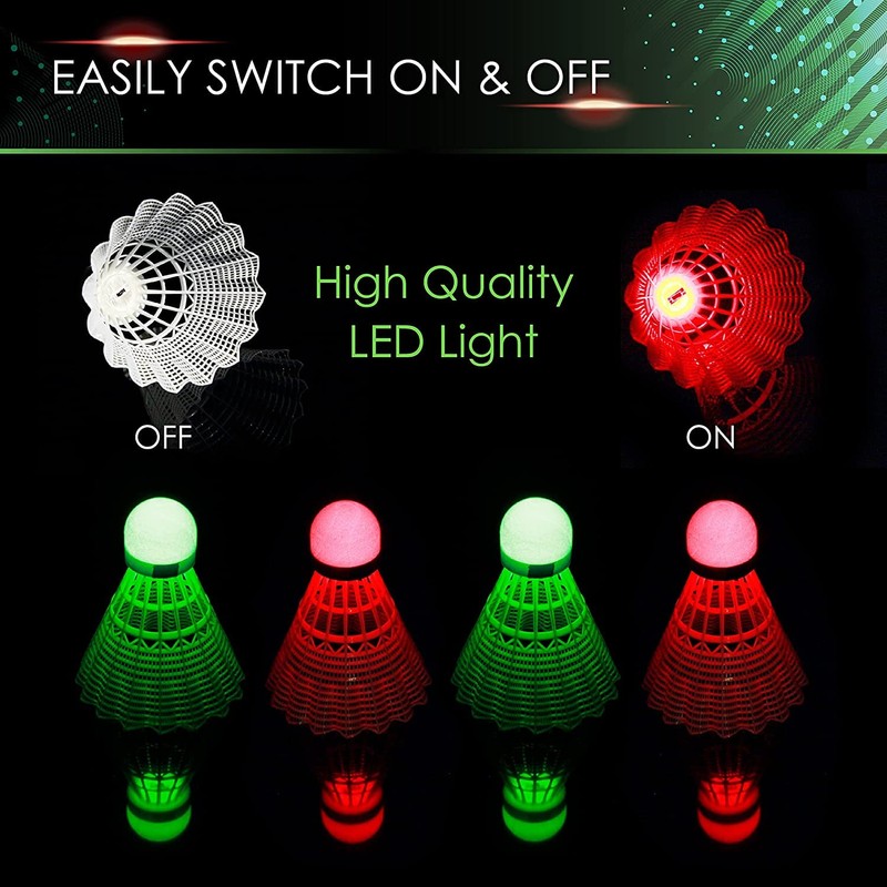 - High Color Saturation - Comes with high color saturation LED lights turn the shuttlecocks green and red with a pack of 4.