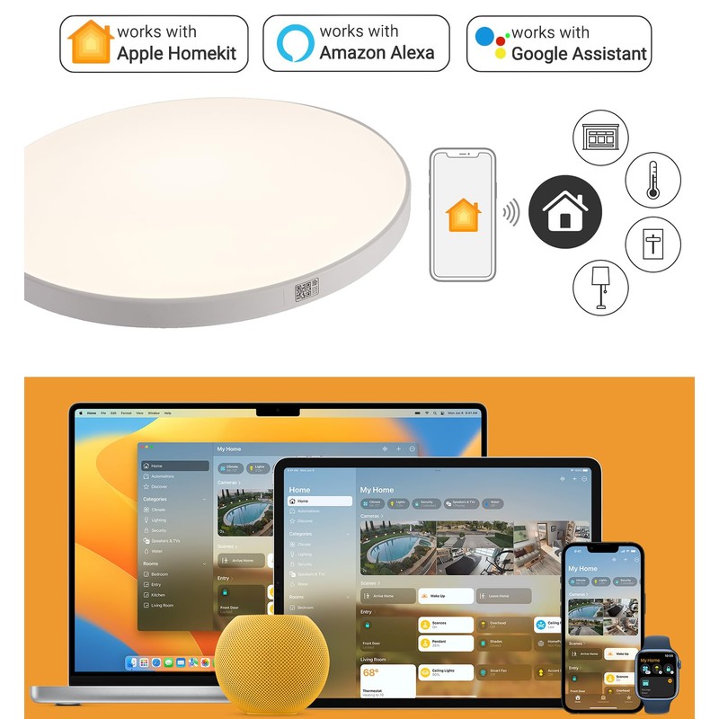 - Apple Homekit ceiling light: scan QR code for direct connection. Please use iOS 13 or above. Applies only to 2.4GHz Wi-Fi networks. See attached user manual