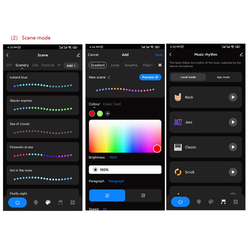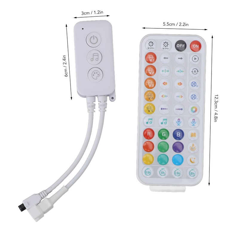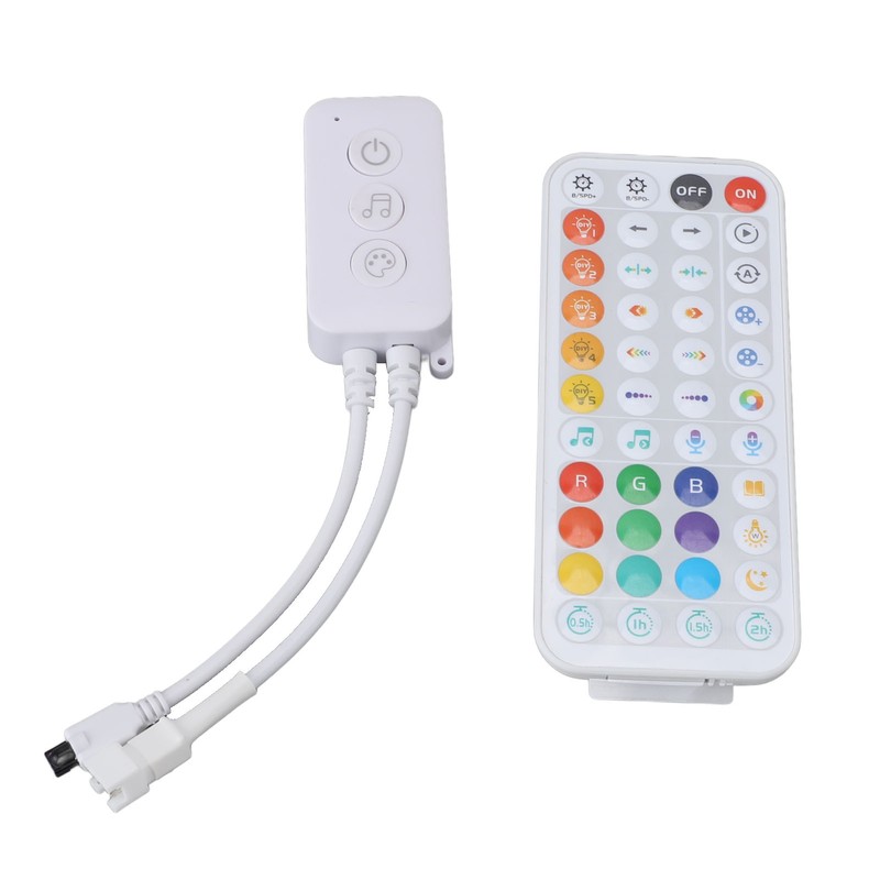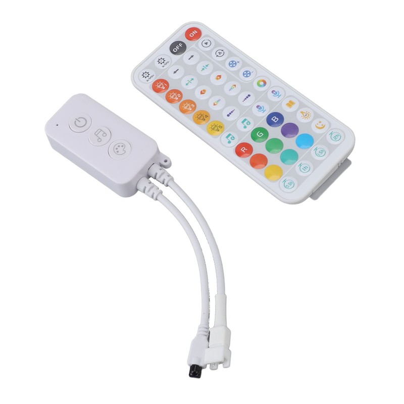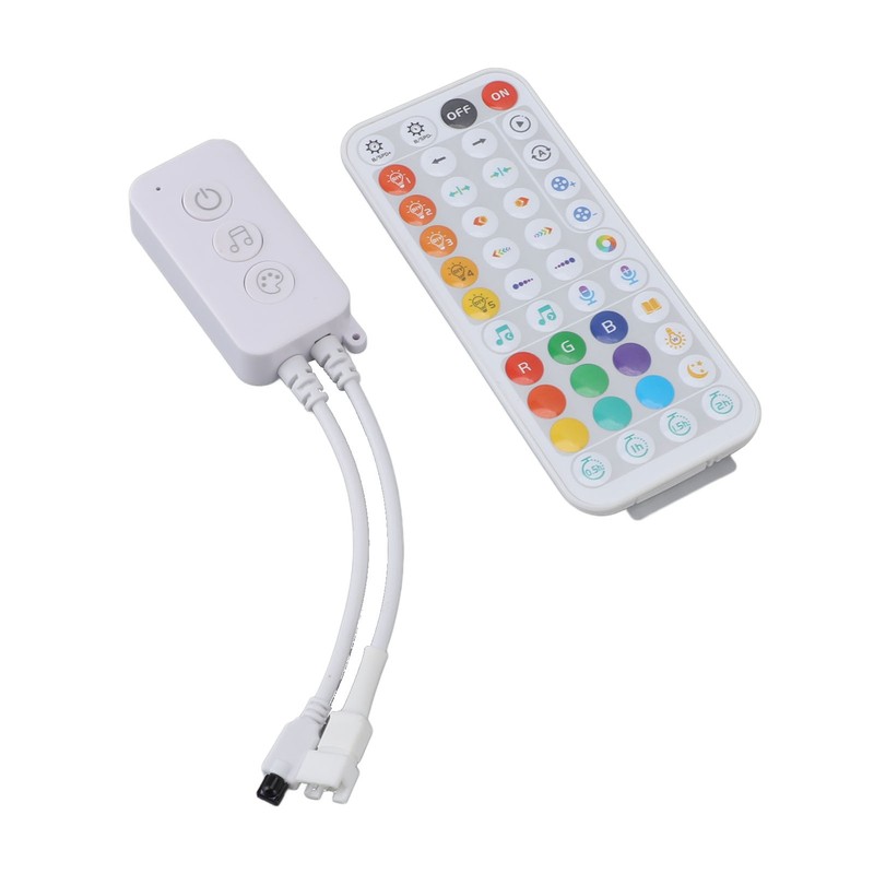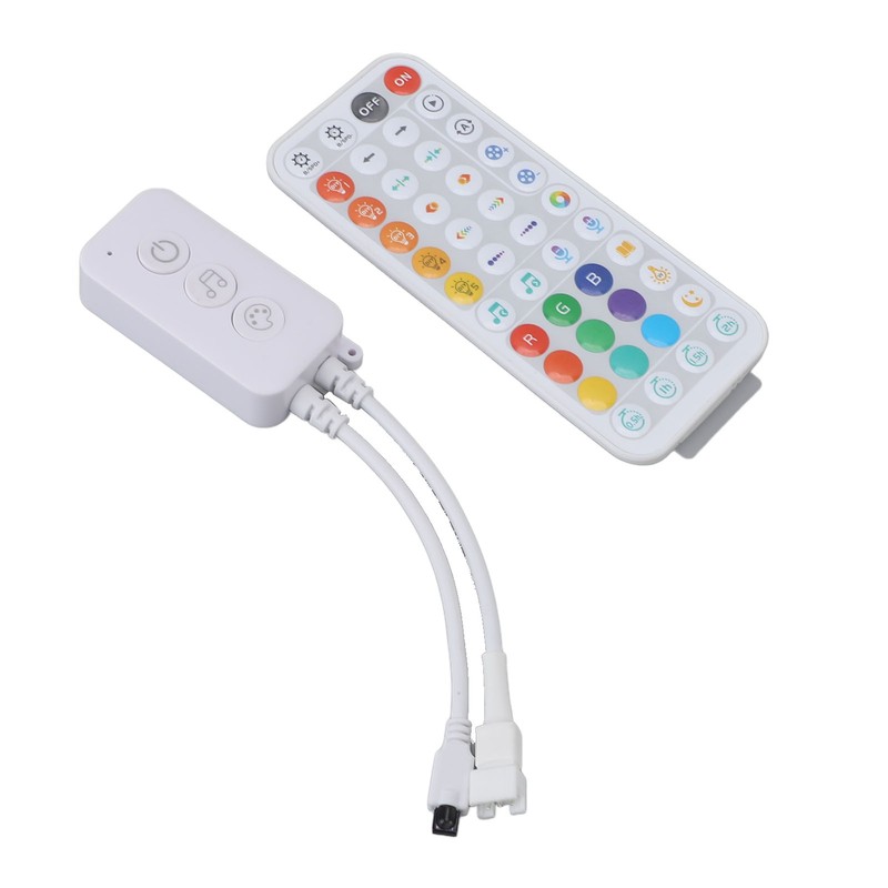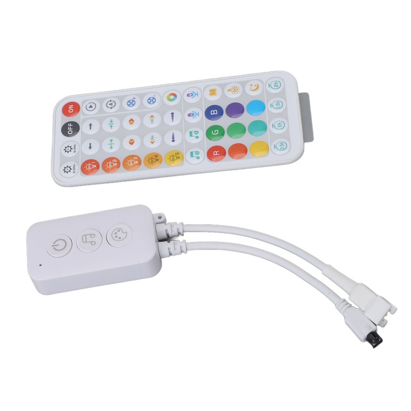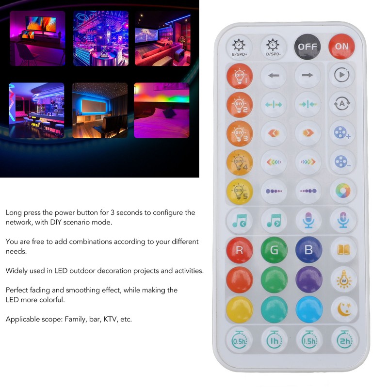 1、INTEGRATED RGB CONTROLLER: This dimmer combines a remote controlled RGB controller with infrared capabilities, allowing you to adjust the RGB color sequence of your light strips effortlessly. 2、ADJUSTABLE IC POINTS: Use the remote control to fine tune the IC points of your light strips, giving you full control over the desired lighting effects. 3、EASY SETUP AND DIY MODES: With a simple 3 second long press of the power button, you can easily connect and set up this dimmer. It also features customizable DIY scene modes, letting you personalize the lighting according to your preferences. 4、VERSATILE APPLICATIONS: This dimmer is widely used in large LED outdoor decoration projects and events. It provides impeccable fading and smoothly effects, enriching the colors emitted by your LED lights. 5、SUITABLE FOR VARIOUS SETTINGS: Perfect for home, bars, KTV, and more, this dimmer creates the ideal ambiance and lighting environment for a variety of spaces.