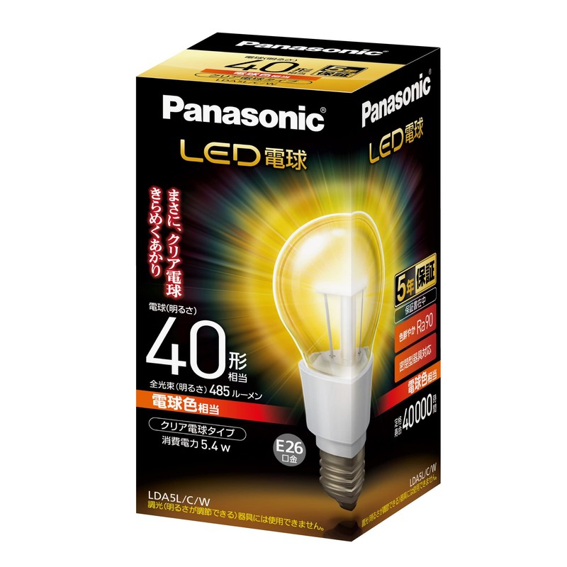 パナソニック LED電球 E26口金 電球40形相当 電球色相当(5.4W) 一般電球・クリアタイプ LDA5LCW