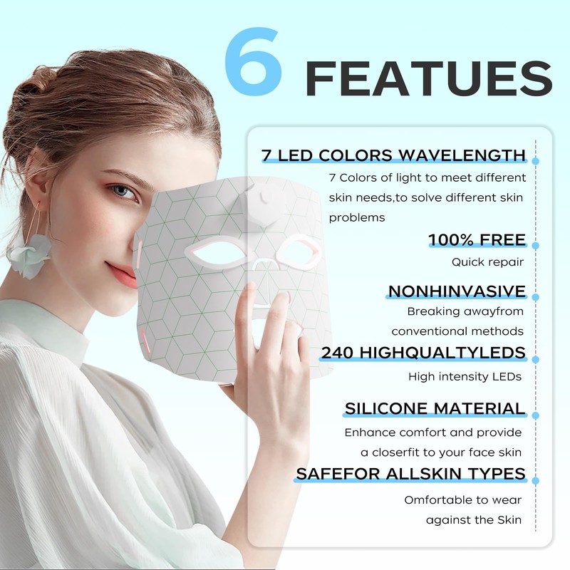 • 【Multi-function】LED face mask features 7 light modes, each corresponding to different function, sufficient to meet daily needs and protect your face light (For specific feature descriptions, please refer to the bottom of the packaging box)