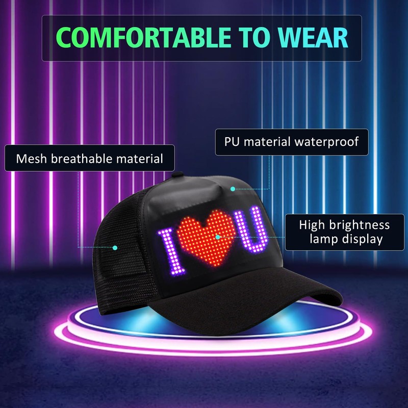 - VERSATILE DESIGN: Classic baseball cap style with built-in LED display panel, suitable for both indoor and outdoor use