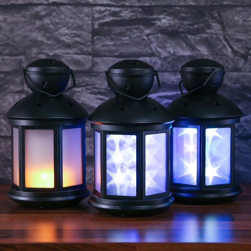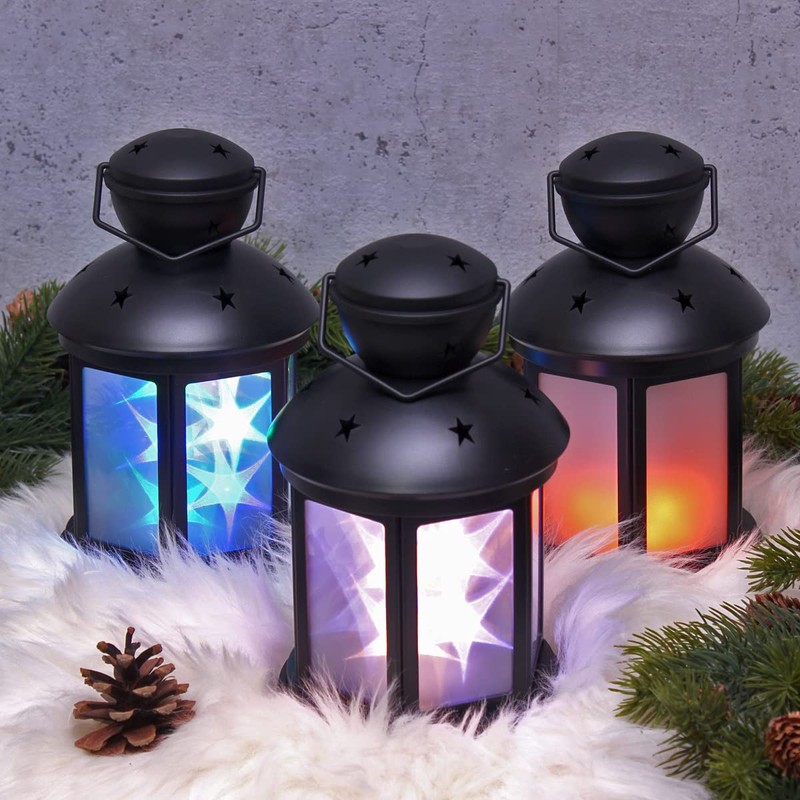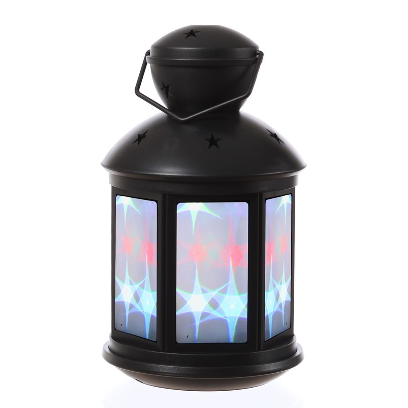 LED Lantern with Effect, Decorative Mood Lantern (Black - Coloured Star Effect)
