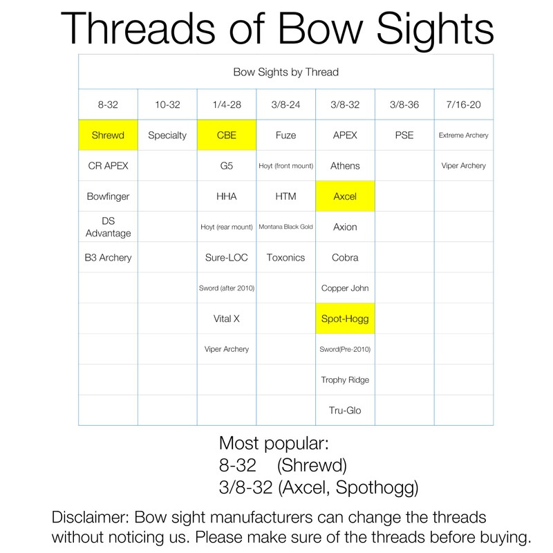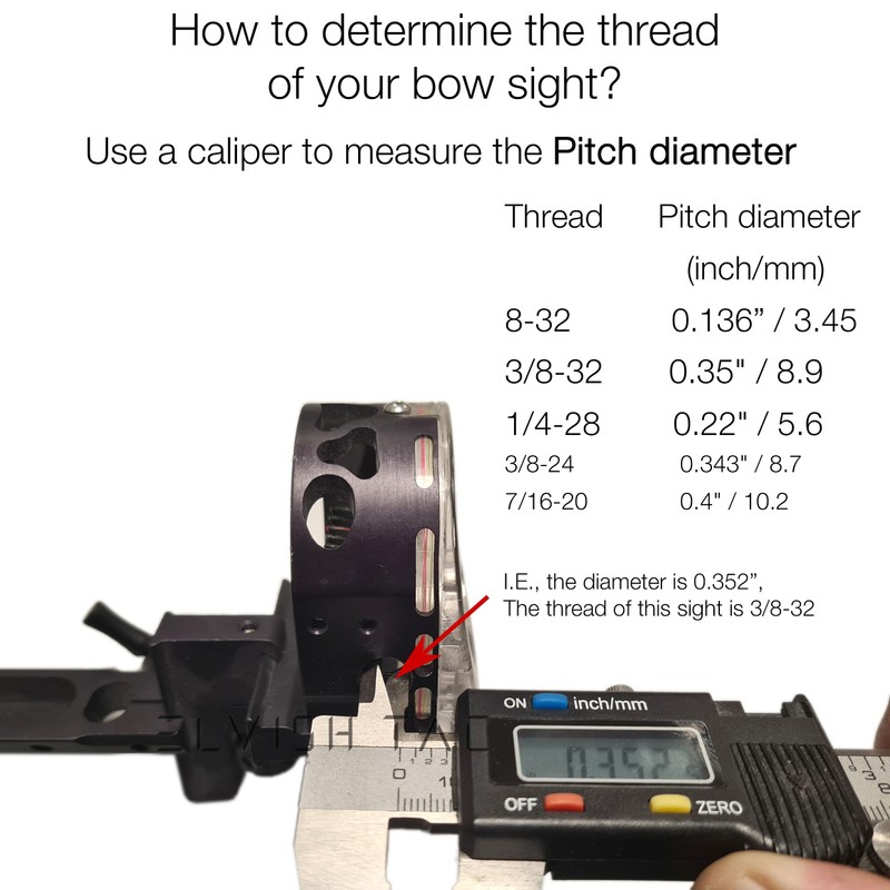 - Please make sure of the threads before your purchase, call you bow sight company to find out if you have to, otherwise it will NOT fit. The E-Tac light power unit shown in the photos is NOT included.