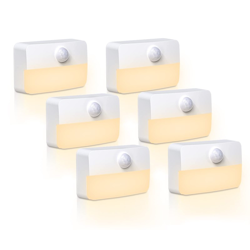 LED Night Light with Motion Sensor, Pack of 6 Small Night Light Children, Warm White Light, Stair Lighting with Motion Sensor Indoor, Auto On/Off Sensor Light for Hallway, Bathroom, Bedroom, Toilet