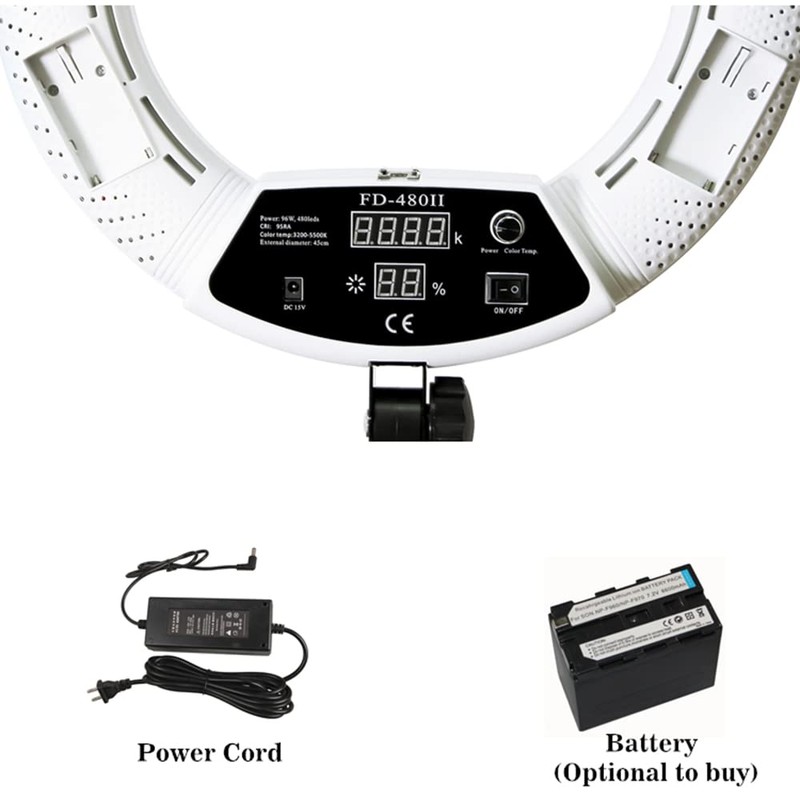 • 【Powerful Ring Light】Ring lights have a very good performance in shooting, fill light, etc. Boasting 480pcs high performance leds, bright enough for 96w, Bi-color tempreture can be adjusted, 0-100% dimmable, can do almost any fill light job.