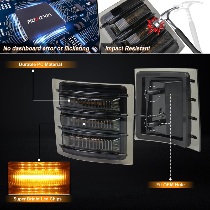 MOVOTOR LED Side Marker Lights with Amber Sequential Turn Signal Side Corner Lights Smoked Lens Compatible with 1994-1998 Chevy C/K 1500 2500 3500 Suburban Silverado Tahoe