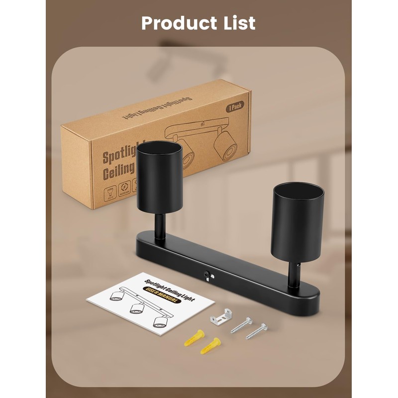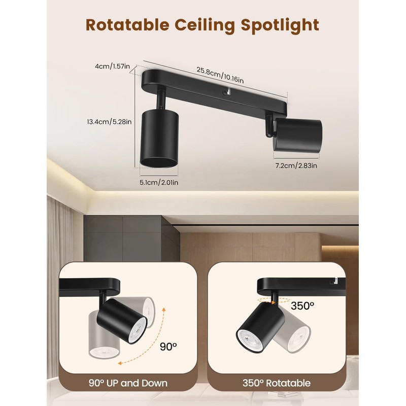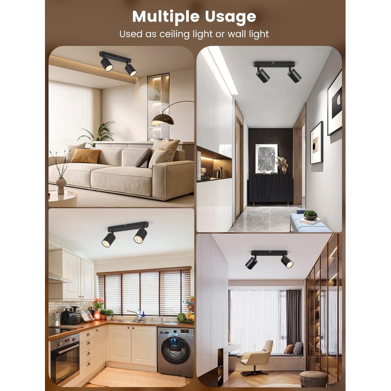 • Modernes Design -- Die Deckenstrahler 2 Flammig ist aus hochwertigem Aluminium und Eisen gefertigt, was Feuchtigkeit und Rost auf der Oberfläche der Lampe verhindert. Durchgehend mattem schwarzer Sprühfarbe, LED Deckenleuchte fügt es sich mit seinem schlichten, modernens Design perfekt in Ihren Wohnraum ein.