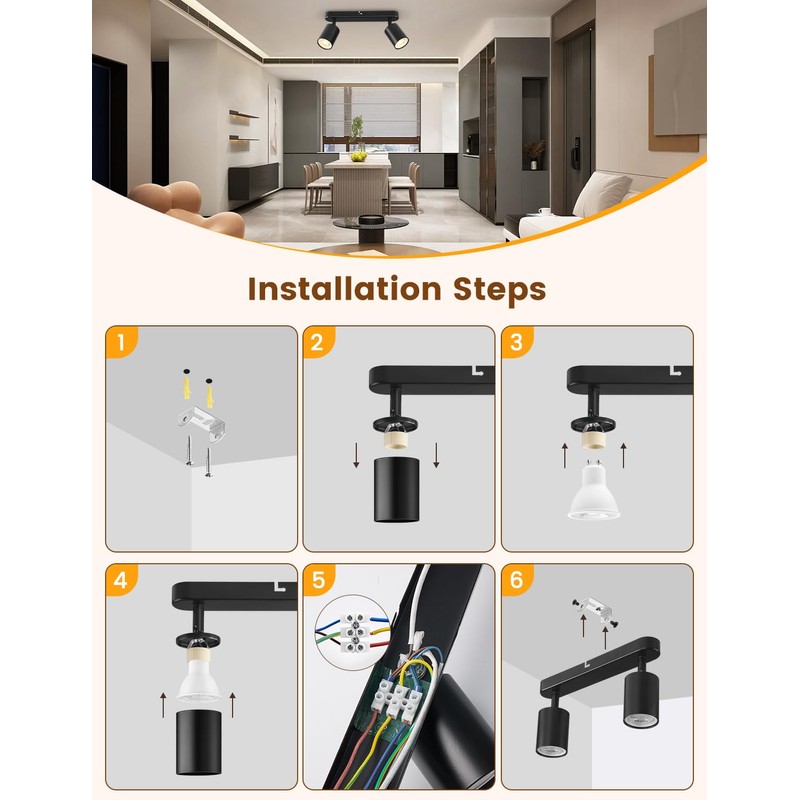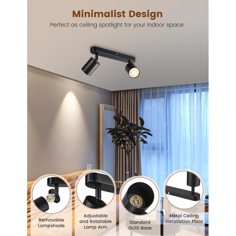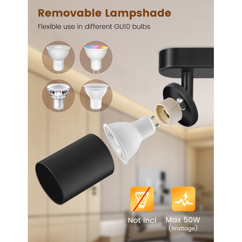 • Abnehmbarer Lampenschirm -- Deckenlampe Strahler verfügen über ein abnehmbares Lampenschirmdesign. Flexible Verwendung mit verschiedenen GU10-Glühbirnen, einfach zu installieren und auszutauschen (Max 50W). GU10-Leuchtmittel sind nicht im Lieferumfang enthalten.