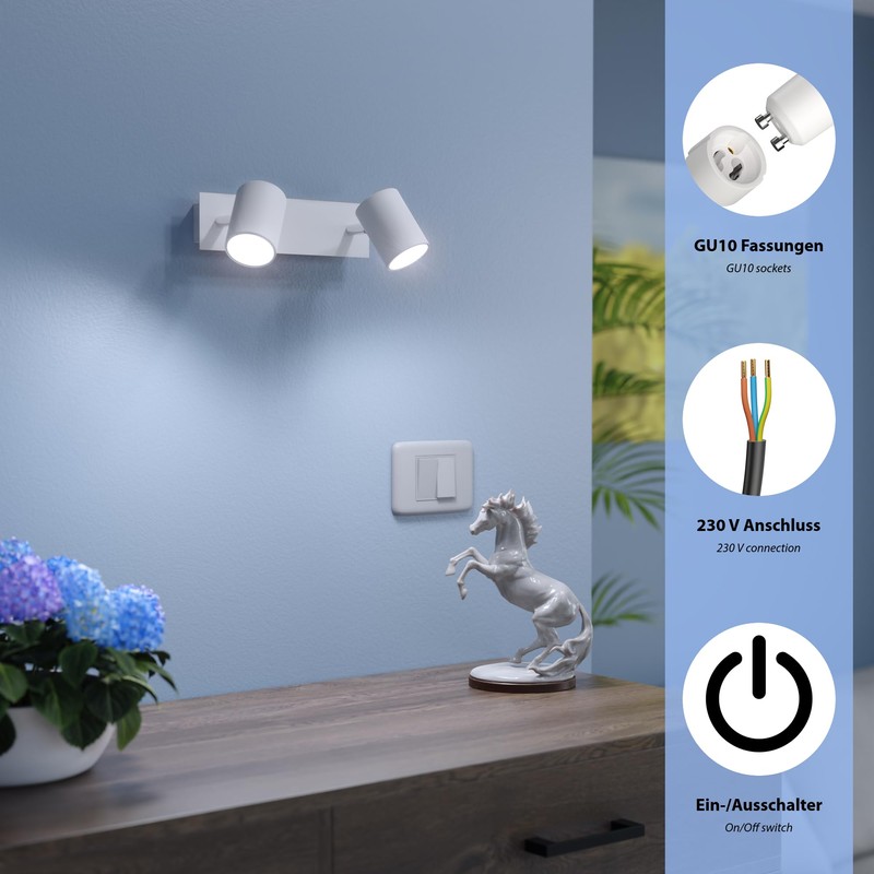 ledscom.de ledscom.de 2 Stck Wandleuchte WAIKA, 2-flammig, Schalter, wei? matt, eckig, 2x GU10 max. 60W