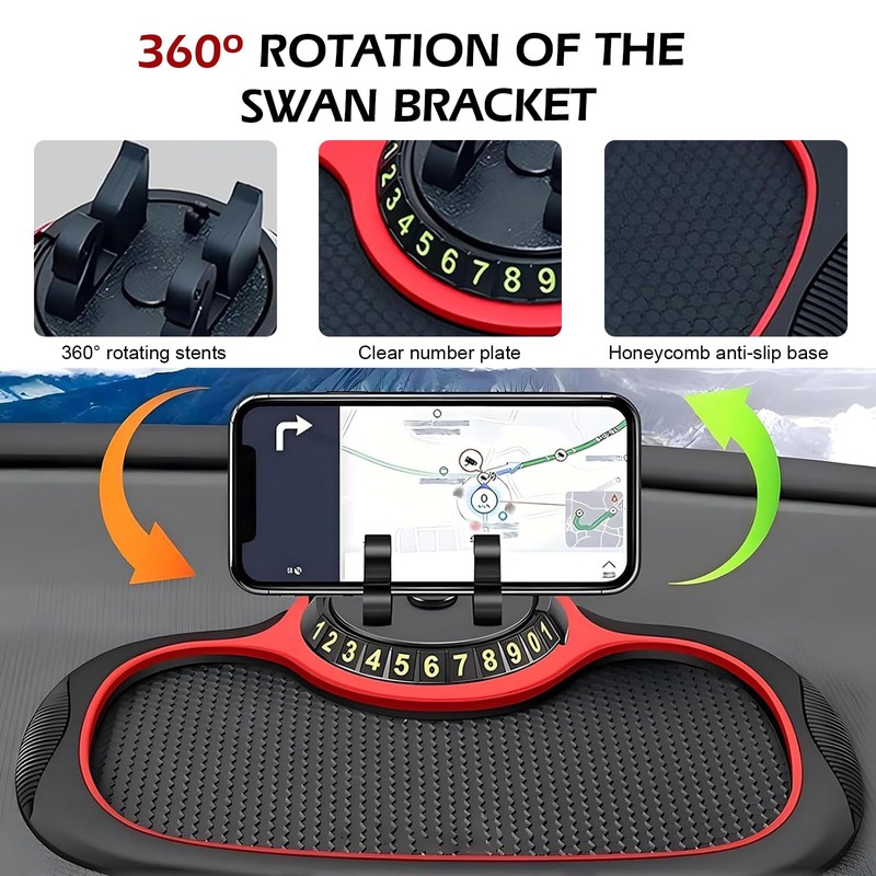 leechio 1 PC Multifunctional Car Anti-Slip Mat, Anti-Slip Rubber Dashboard Storage Pad and Phone Holder, with Temporary Parking Number, Universal Dashboard Storage Accessories (Black & Red)