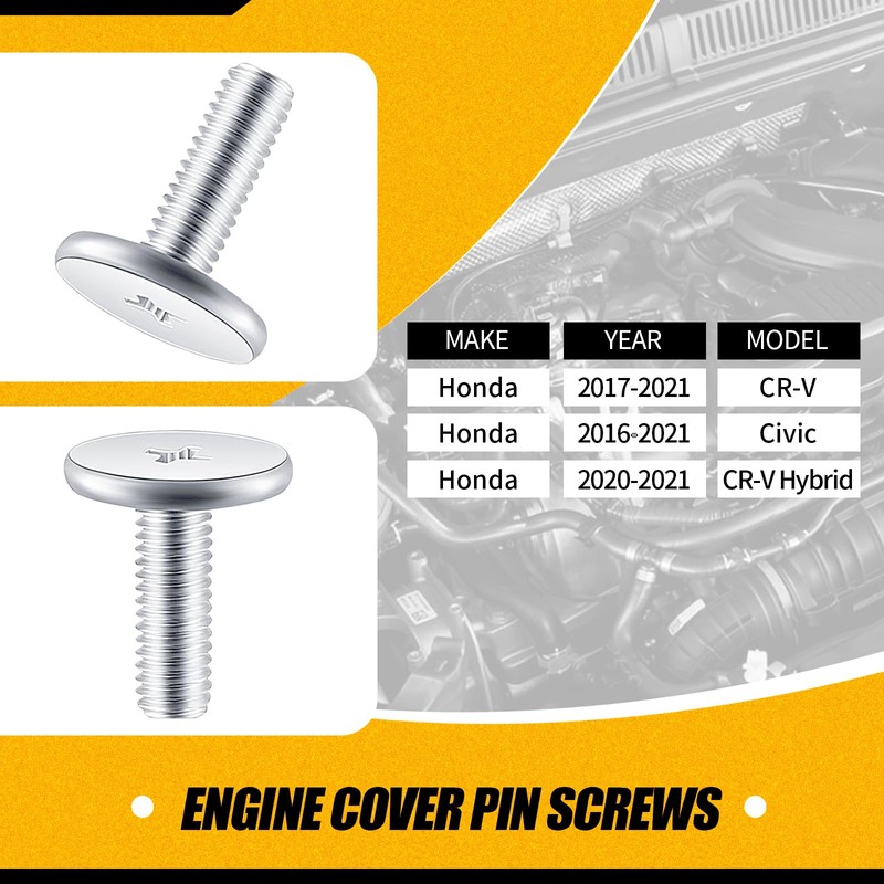 - Package Information: There are 8 pieces of engine cover pin screws in total, 6 pieces of lower engine cover pin screws and 2 pieces of radiator support splash guard bolts. They are compatible with Honda. These are sufficient quantities and perfect replacements for your needs. You can use our products with confidence.