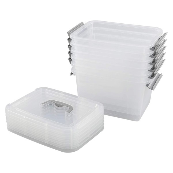 Leendines 5 Quart Storage Box with Lid, 6 Packs Small Plastic Box Tote Bin