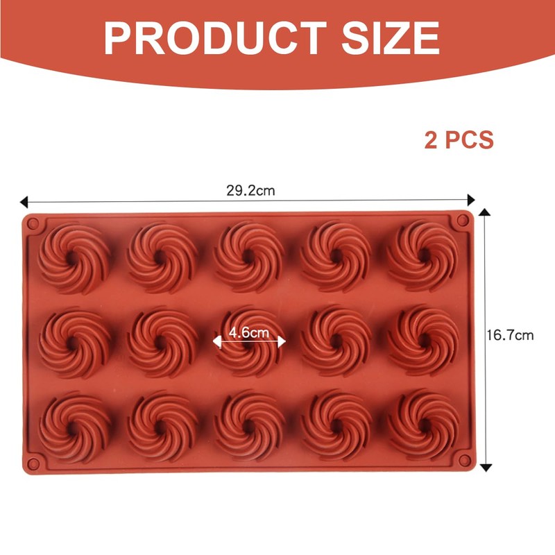 LEEQ Mini Gugelhupfform 15er - Mini Donut Backform Gugelhupfformen, Silikon spiralförmige Gugelhupf Kuchenform aus Silikon für Schokolade, Muffins, Brownies, Kuchen, Pudding, 29x17x2.2cm(2 PCS)