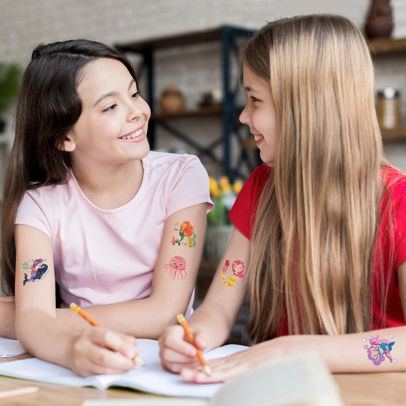 - 【Quantity and Quality】Different 50 sheets of temporary tattoos in mermaid designs that are available for mermaid , toys, party bag fillers, games prizes for classroom. Our temp tattoos undergo rigorous party testing and are guaranteed to last a full day or longer.