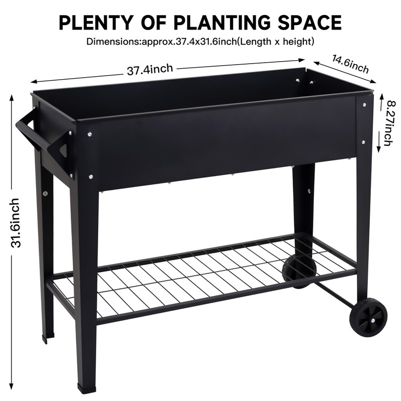 - SPACE SAVE: Space saving standing planter raised beds with rectangular shape easy to place on garden, patio, balcony or deck .big storage shelf 37X13.4inches holds accessories or tools for planter,big planter box can holds 2.5 cubic feet of planting soil.
