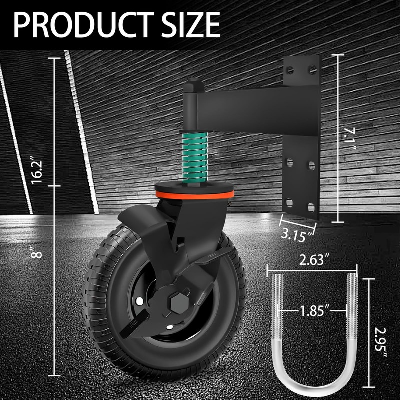 LEFLCRE Gate Wheel, 8inch Heavy Duty Fence Gate Wheels for Wooden Gate and Metal Tube Gate,Support to 700 lbs, Spring-Loaded 360 Degree Rotation Gate Caster Kit