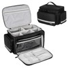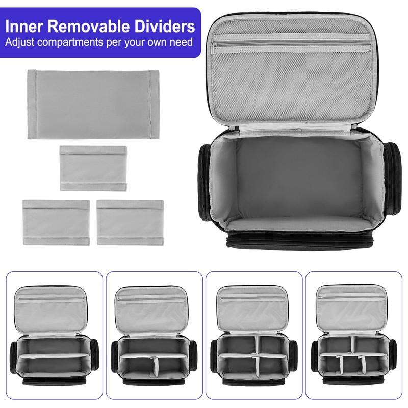 - ADJUSTABLE MAIN COMPARTMENT The medicine storage bag has 4 removable dividers that divide the main space into 5 parts to easily organize various medical supplies as needed. The large U-shaped opening with two-way zipper is convenient for inserting or taking out items.