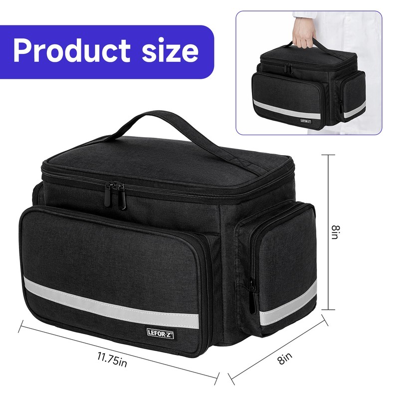LEFOR·Z Medical Bag for Home Health Nurses Empty First Aid Storage Bag with Removable Divider Bag for Nursing Students Therapists Doctors, black, Black Small