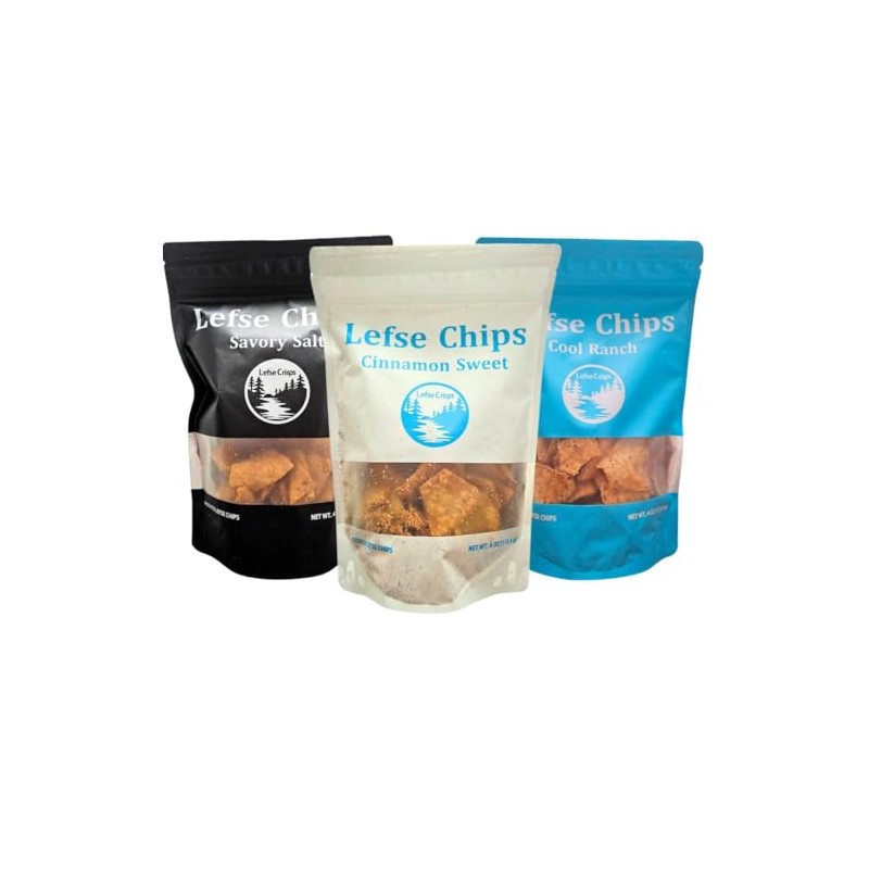 Lefse Chips, 4oz - Variety Pack of 3 - Savory Salt, Cool Ranch, Cinnamon Sweet
