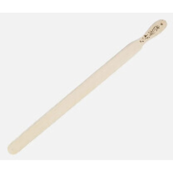• Traditional-style lefse stick made of natural wood with a flower insignia burnt on the handle.