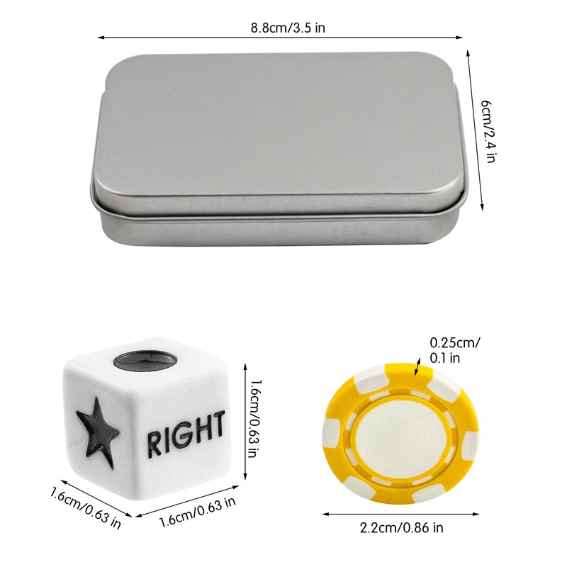 • Interesting Design: Cube dice are marked with "Left", "Right", "★"(Center), and "●"(Dot).