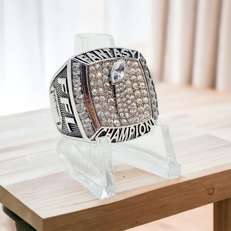 Legacy Rings Season 2022 2023 Fantasy Football Championship trophy ring with clear display stand | Silver Tone | Size 8-14 (8)