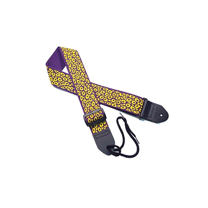 Legacystraps Leopard 2” Cotton Guitar Strap with Yellow Leopard Spots on a Purple Strap