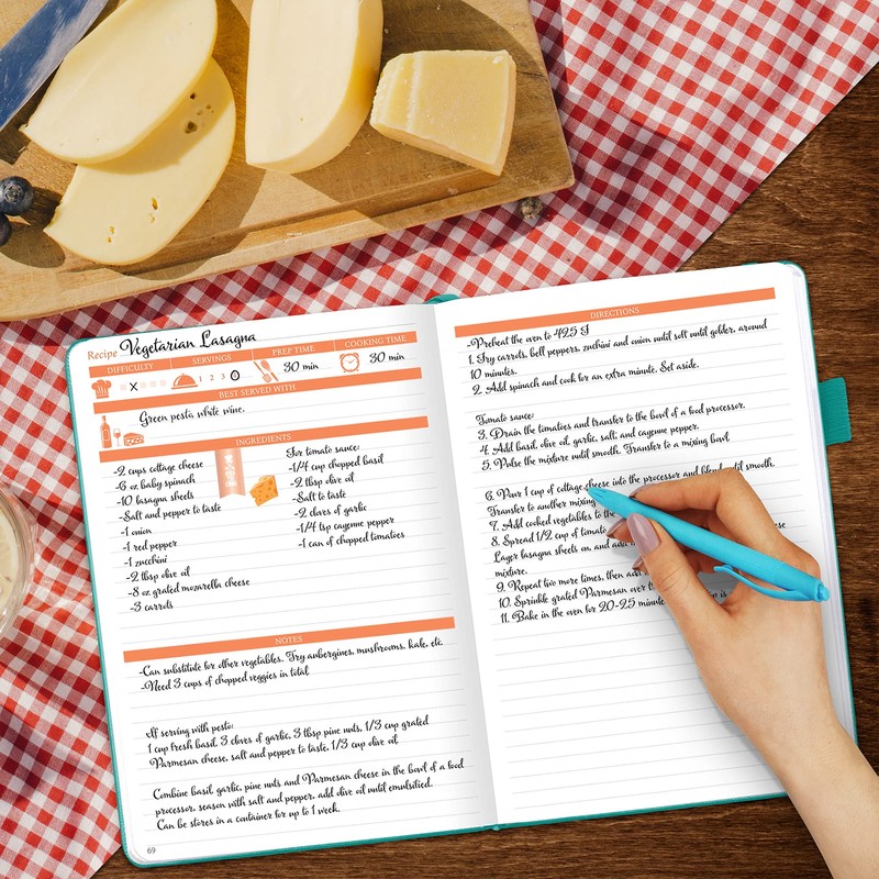 • STORE, ORGANIZE & SHARE YOUR FAVORITE RECIPES - Create a unique collection of your cherished family recipes. You can store up to 58 recipes in this recipe notebook to write in, so there is plenty of space for your culinary masterpieces for any occasion.