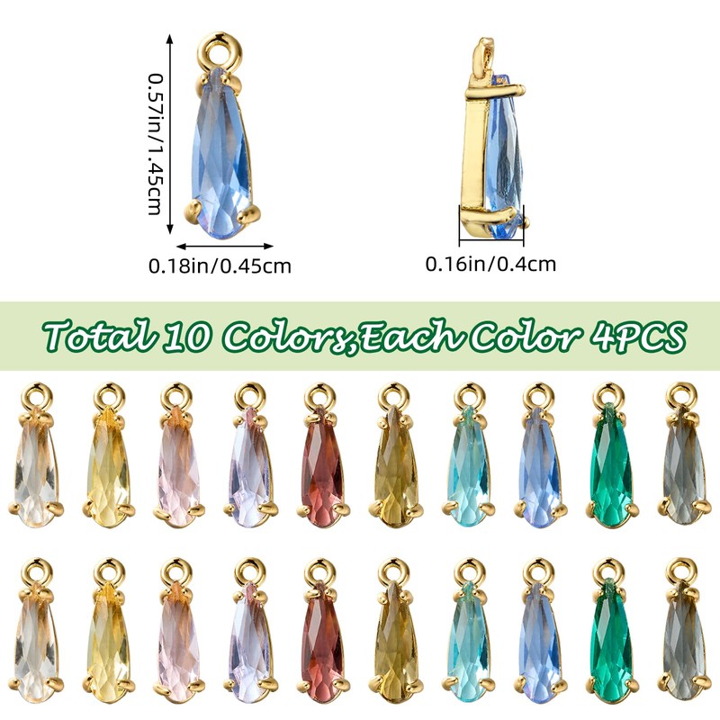 LEGENTLISUR 40 Pcs Teardrop Charms for Jewelry Making Crafts Crystal Charms Pendants for Bracelets Necklace Earrings Findings for DIY Keychain Accessory(Mixed Color)