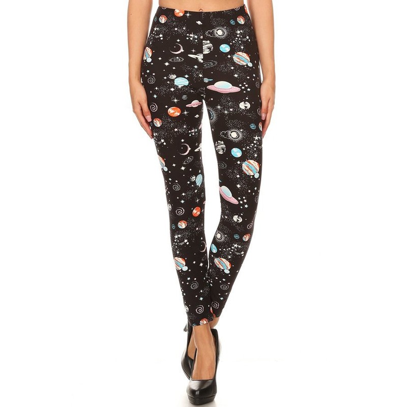 Leggings Depot High Waisted Camouflage & Multiple Print Leggings for Women-Full Length-S512, Space Wonders, One Size