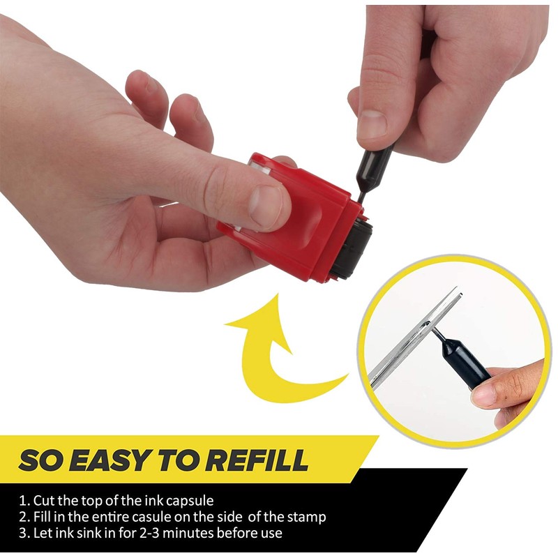 • When the time comes to re-ink your roller it is simple to re-ink using these measured ink tubes.