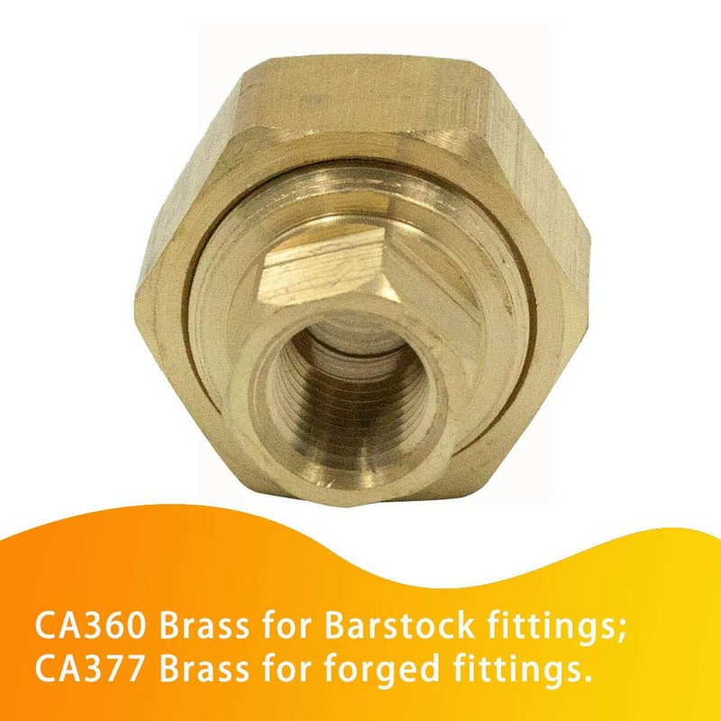 Legines NPT Union 1/4" Female x 1/4" Female Brass Pipe Fitting Straight Connector 1200psi (Pack of 2)