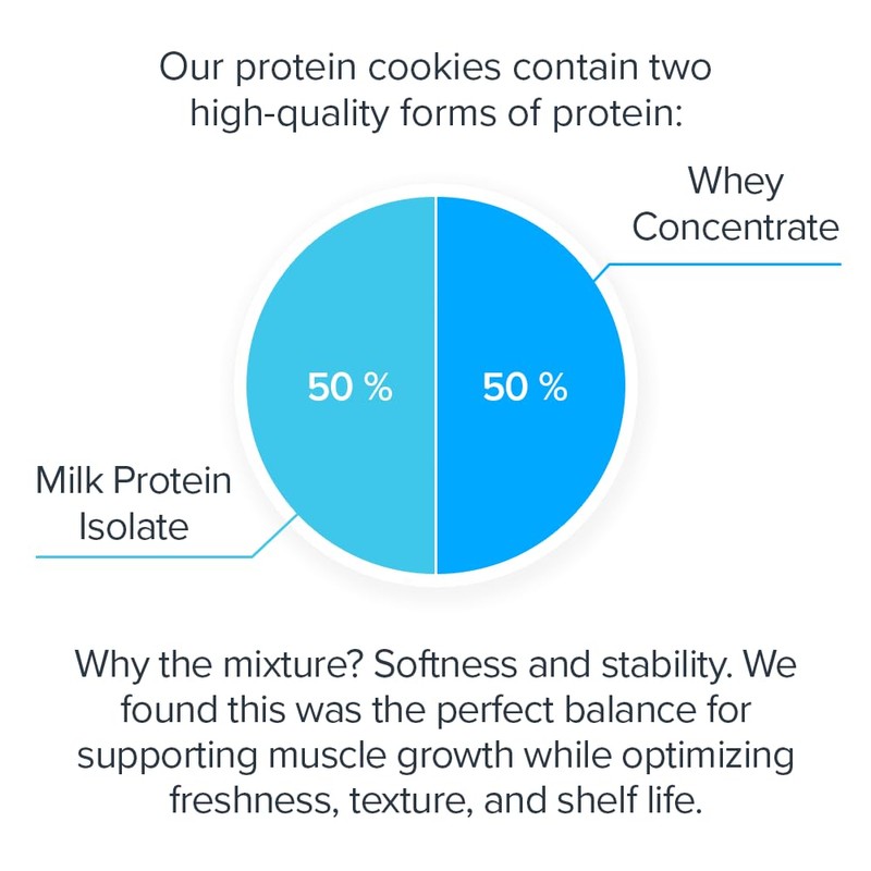 In our quest to come up with the best protein cookies that weve had, we created a top-shelf healthy cookie made with wholesome ingredients that support your healthy lifestyle. Our protein cookie dough contains a premium blend of whey and milk protein, as well as nutritious plant-based carbs, fats, and prebiotic fiber to help keep your fitness goals on track. Naturally sweetened and flavored with stevia, monk fruit, and plant-based flavors, theyre also free from artificial substances, fillers, flavors, food dyes, chemicals, and inactive ingredients that don't add anything of value to you. Because our products are lab-tested for potency & purity, you can be secure in the knowledge that you know exactly what youre getting and putting into your body every time you bite into our cookies.