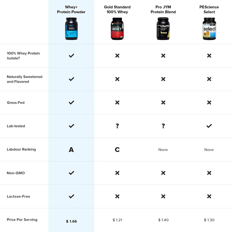 - Tested for purity and potency in an ISO 17025 accredited third-party lab, and independently certified to contain no contaminants or banned substances by Labdoor. Every bag of our Whey+ protien powder is guaranteed to provide exactly what the label claims and nothing else.