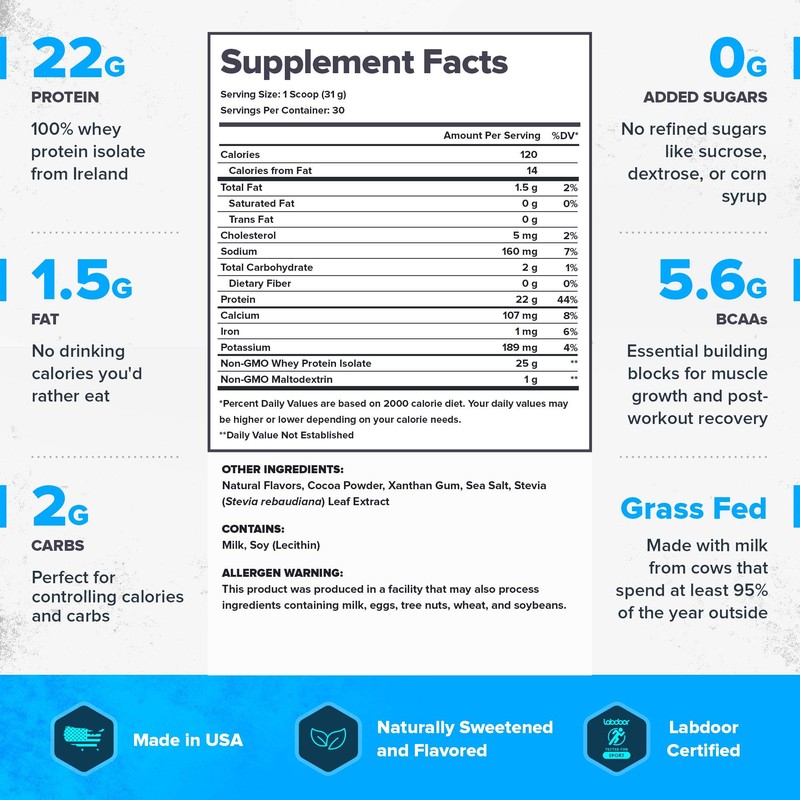 Whey protein isolate is the highest quality whey you can buy, and that’s why every serving of Whey+ contains 22 grams of protein with little or no carbohydrate and fat.