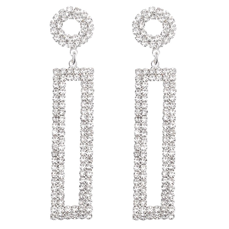 Legitta Rhinestone Long Drop Earrings Silver Cubic Zirconia Sparkly Statement Rectangle Dangle with Circle Studs for Women Wedding Jewelry