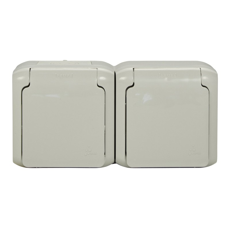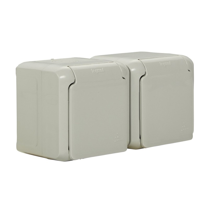 Legrand 782394 Forix Moisture-proof Surface-Mounted Socket IP44 Horizontal (2-Way), 2-Pin with & Cover, Mounts on the wall – Standard White