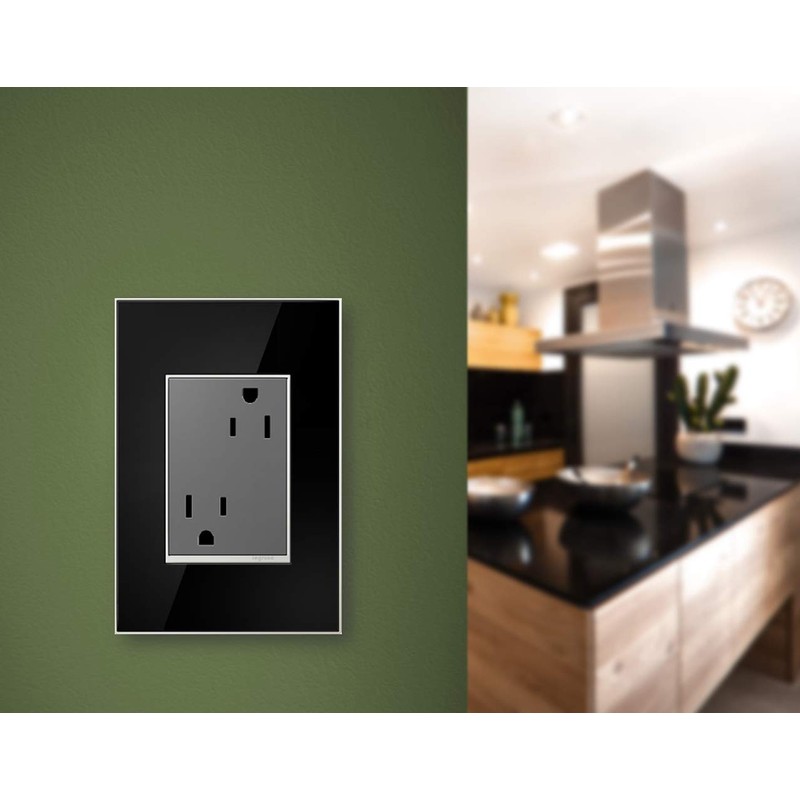 - Offers a greater plug capacity to accommodate larger products such as phone chargers. Offers the capacity of standard 20A outlet. Easily customized with adorne wall paltes available in a brilliant palette of 32 colors and a variety of luxurious materials.