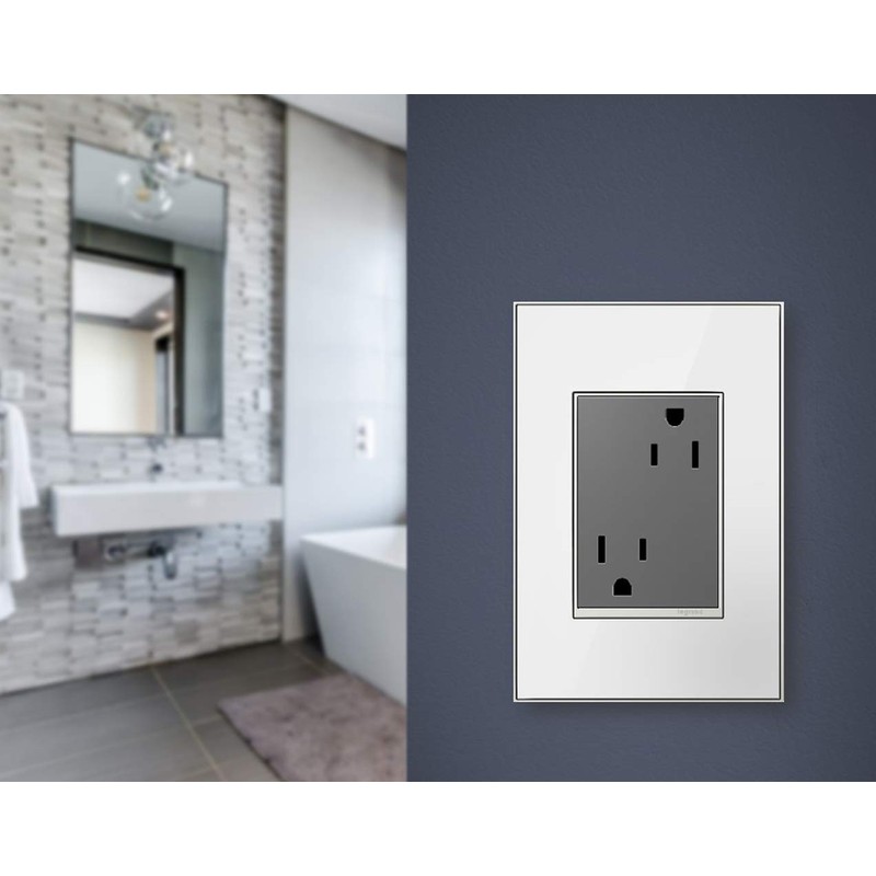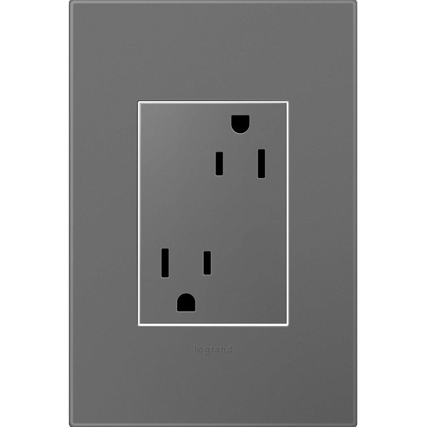 Legrand Adorne 15A Plus-Size Tamper-Resistant Outlet with Matching Wall Plate, 4-Pack (Magnesium Finish), ARTR153M4WP-4