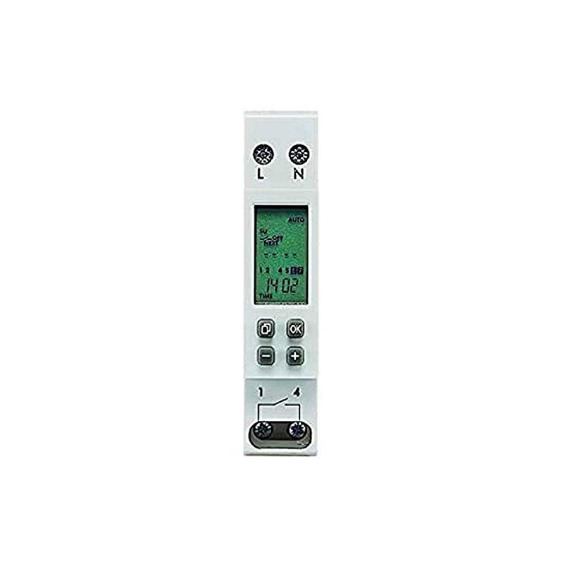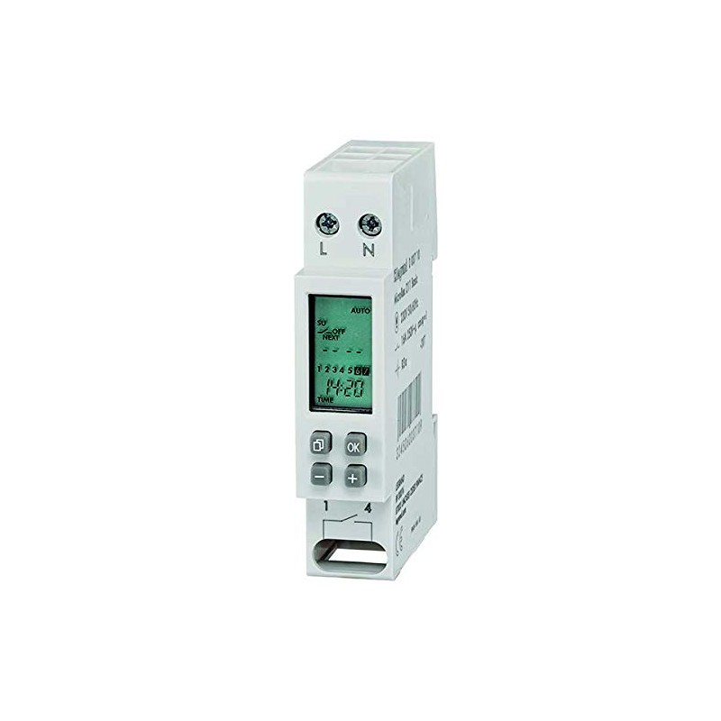 - Digital timer with 7-day program (weekly timer) for DIN rail, 1-module