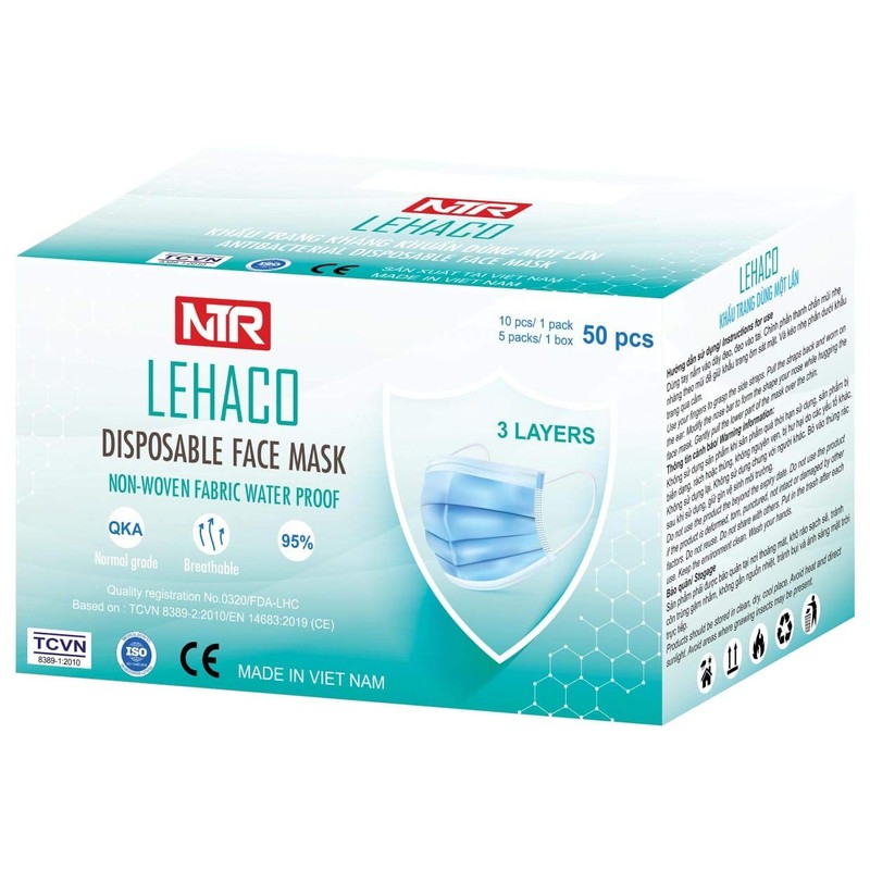 LEHACO 50 Disposable Face Mask 3 Ply Layers with Elastic Earloop
