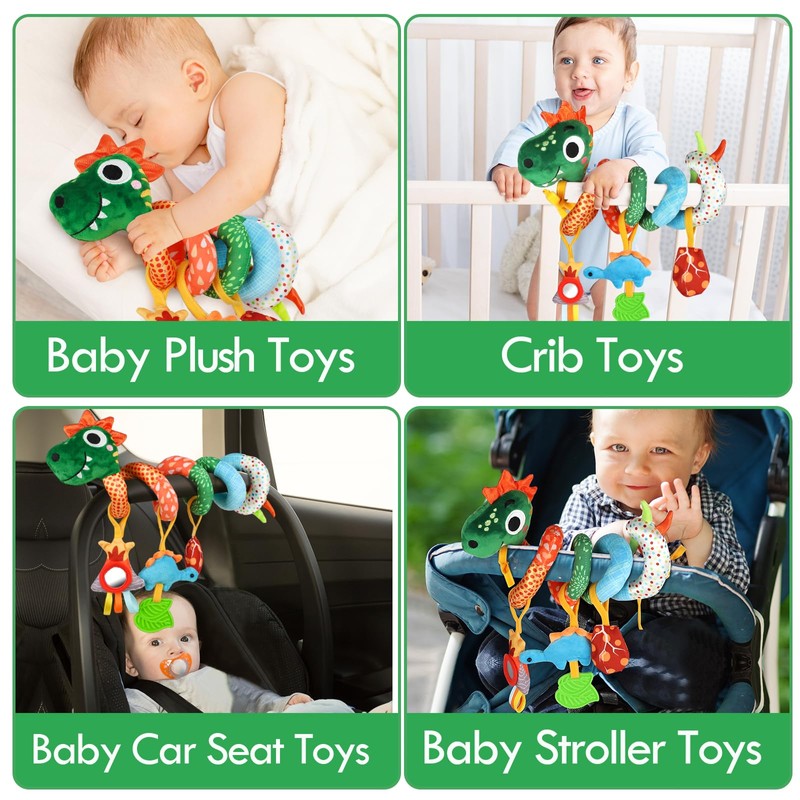 - Fácil de instalar y limpiar: El juguete para cochecito de bebé con forma de dinosaurio de resorte largo se puede enrollar directamente alrededor del manillar, con cordones en la cabeza y la cola para ayudar a asegurarlo. Los tres colgantes están unidos con velcro para facilitar su extracción e instalación, o pueden utilizarse por separado. El tejido de alta calidad no destiñe y puede lavarse directamente. Los padres pueden quitarlo cómodamente para limpiarlo o cambiarlo cuando sea necesario.